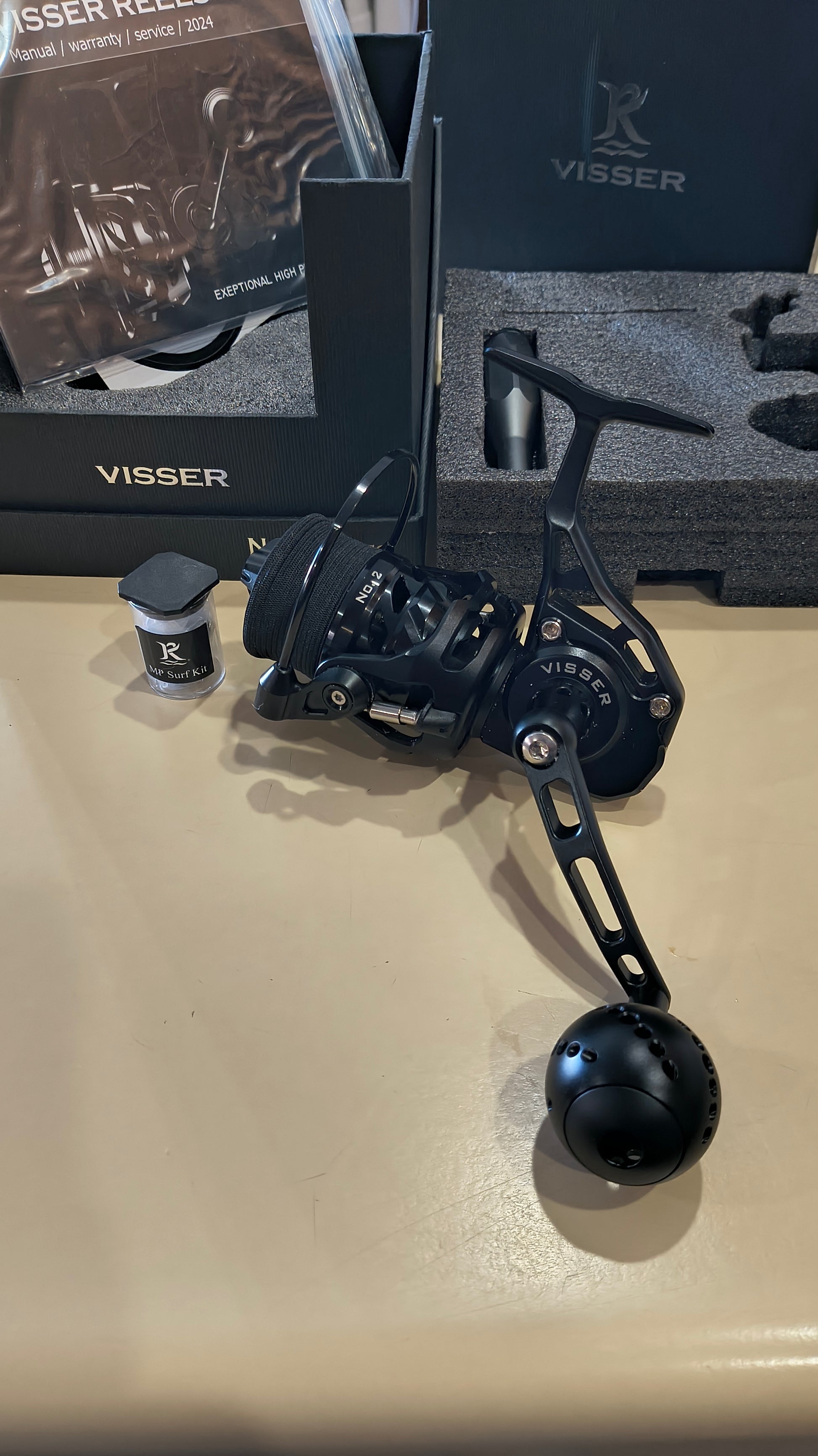 The Visser No. 2 reel, comes with the Bail-less Surf Kit(not installed), is in excellent condition with minimal use since its purchase earlier this year. A reliable and high-performing option, it comes in its original box, ideal for those seeking a quality reel at a great value.